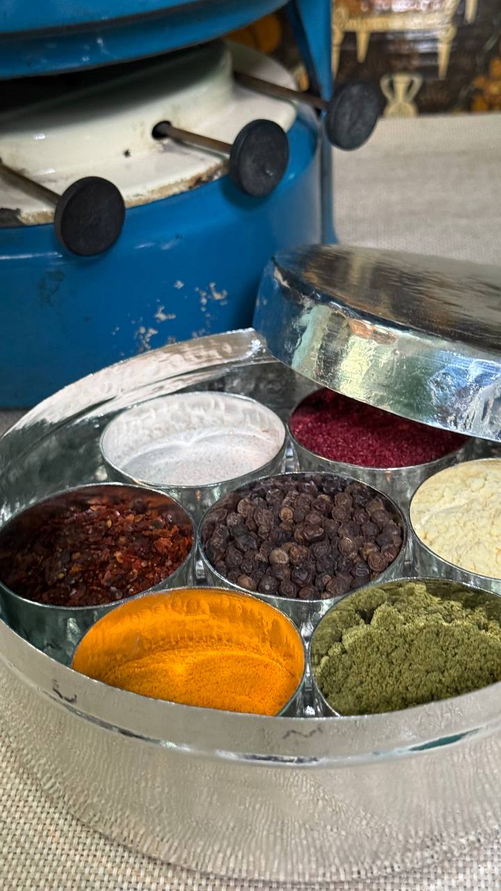 جا ادویه مسی دالاهو هفت خانه مخصوص جای ادویه جات به همراه درب، چکش کاری شده در دو سایز موجود می باشد.