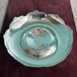 اردوخوری مسی تاجی دست ساز ساخت هنرمندان کرمانی چکش کاری شده با رنگ ثابت که در سه سایز مختلف موجود می باشد.