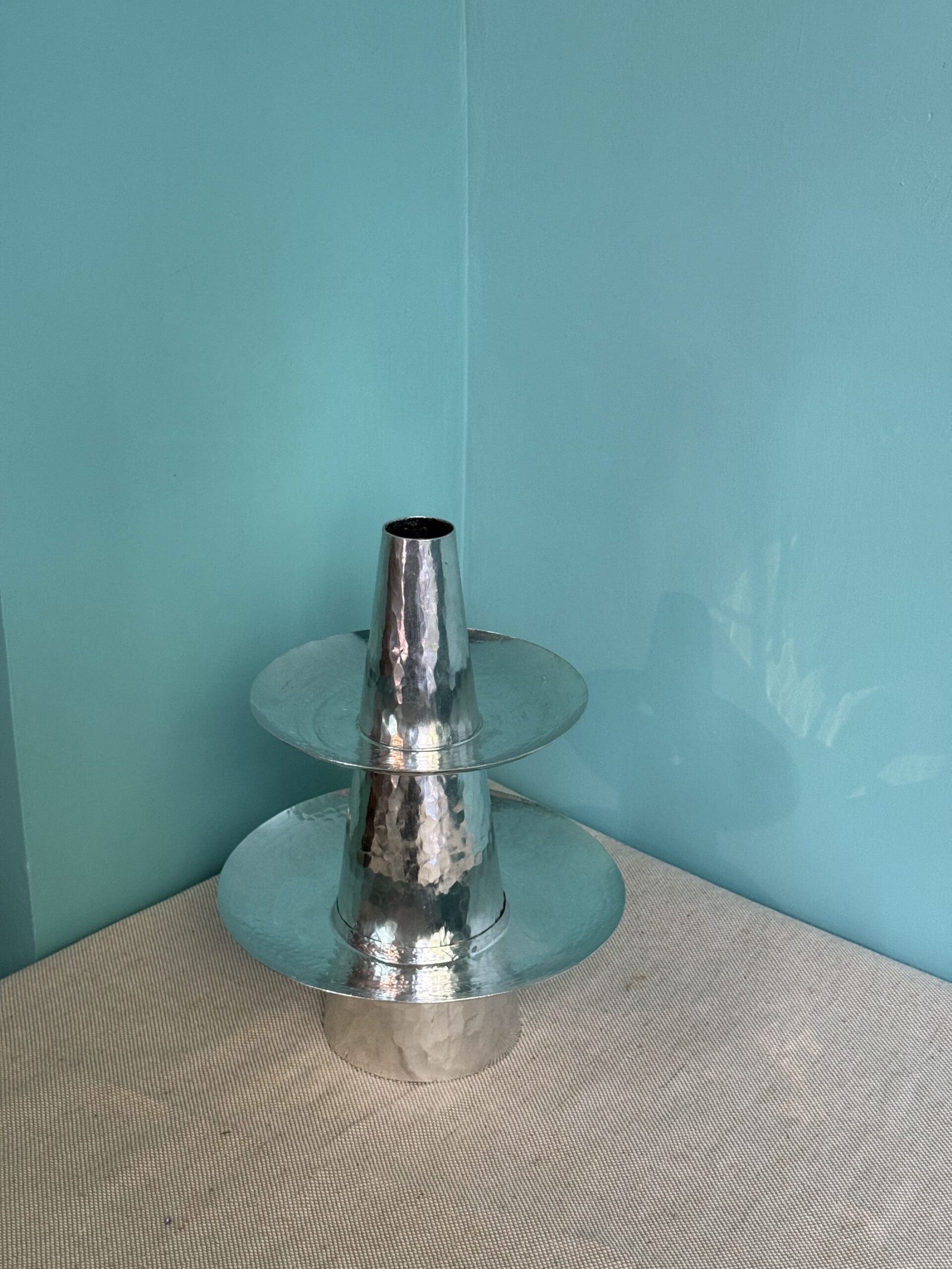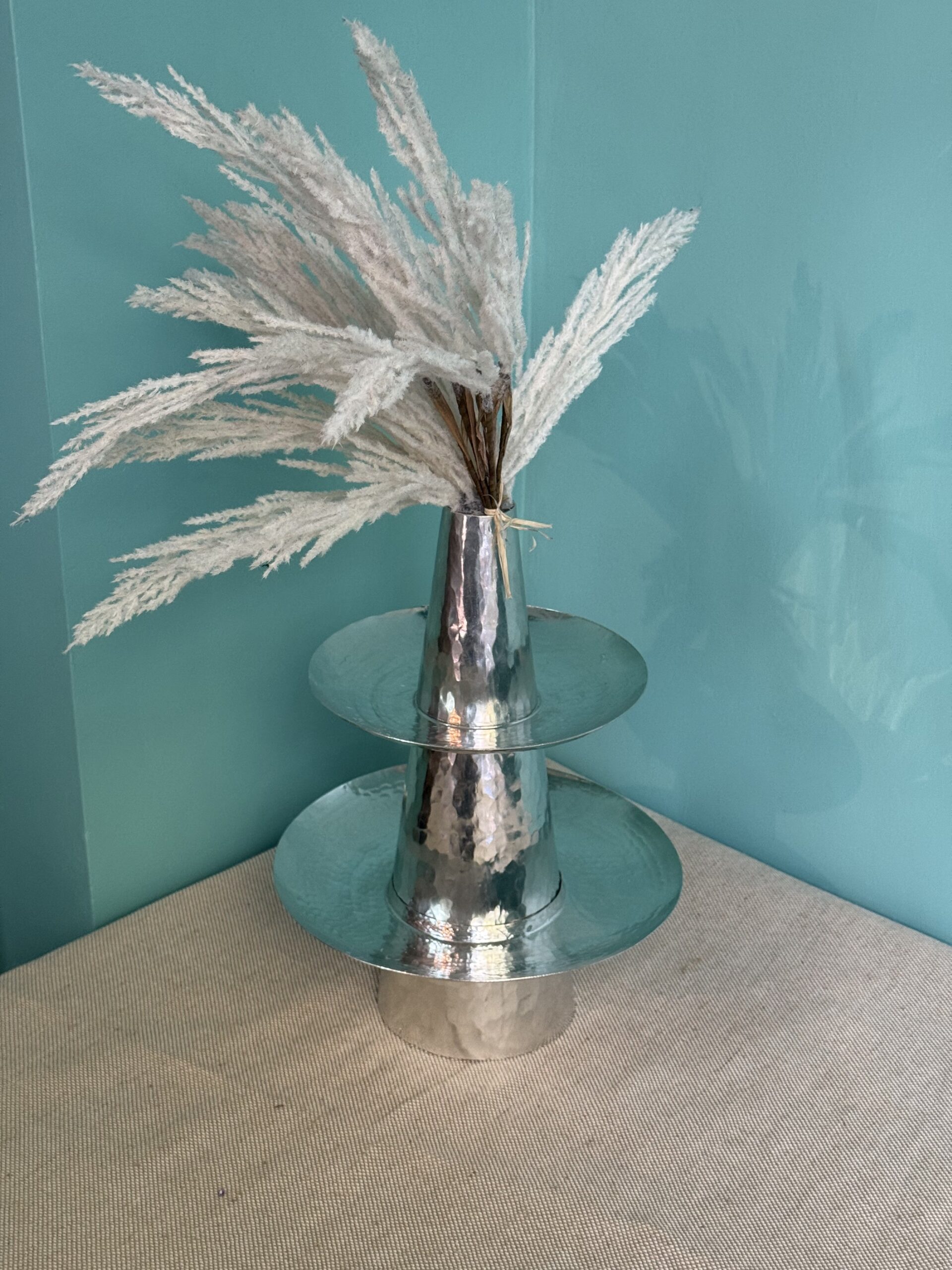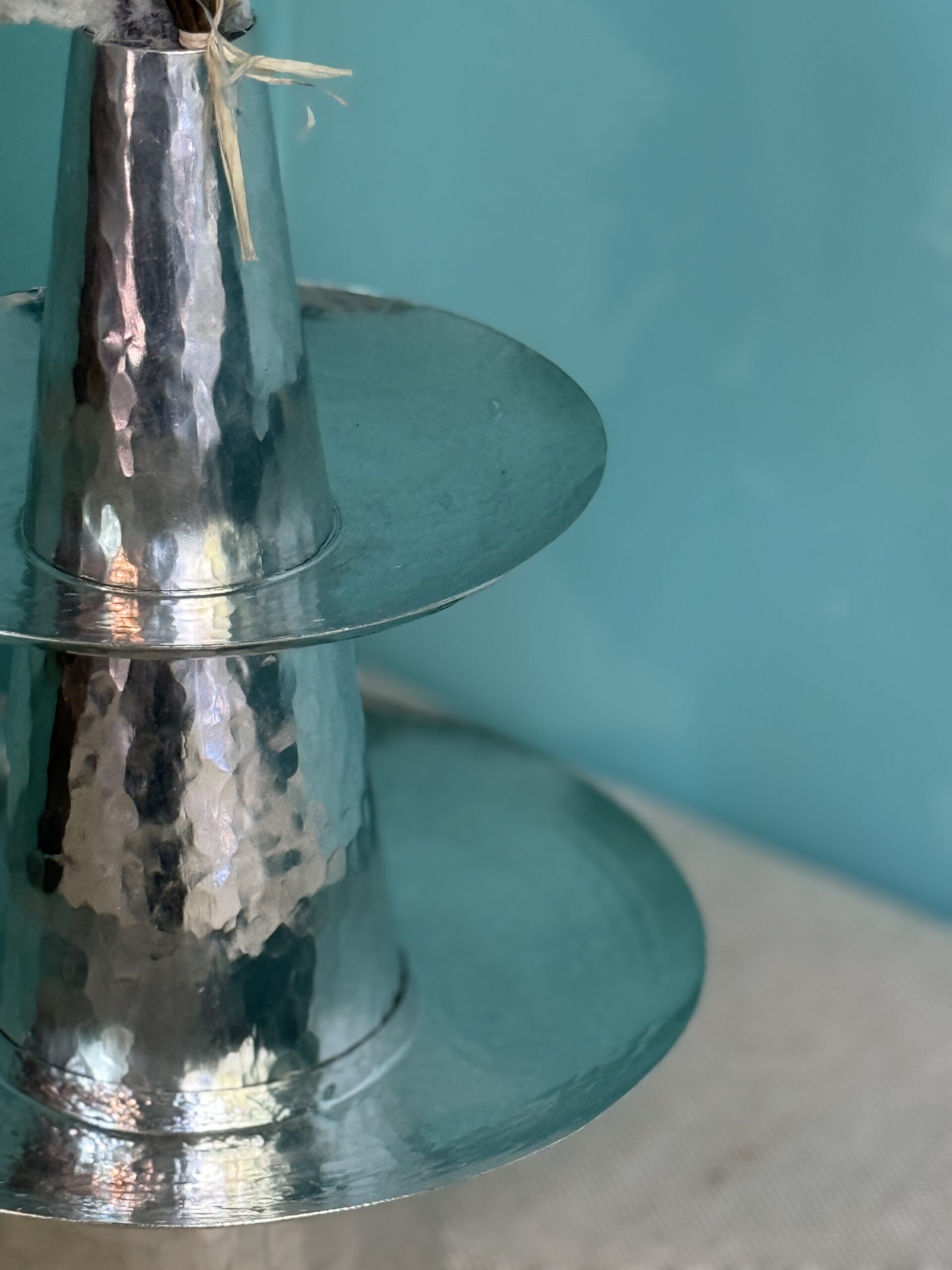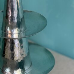 شیرینی خوری مسی پایه قیفی گلرخ ساخت دست هنرمندان کرمانی با مس خالص با خلوص ۹۹.۹۹۹٪ و بهرهگیری از تکنیکهای اصیل چکشکاری ساخته شده.