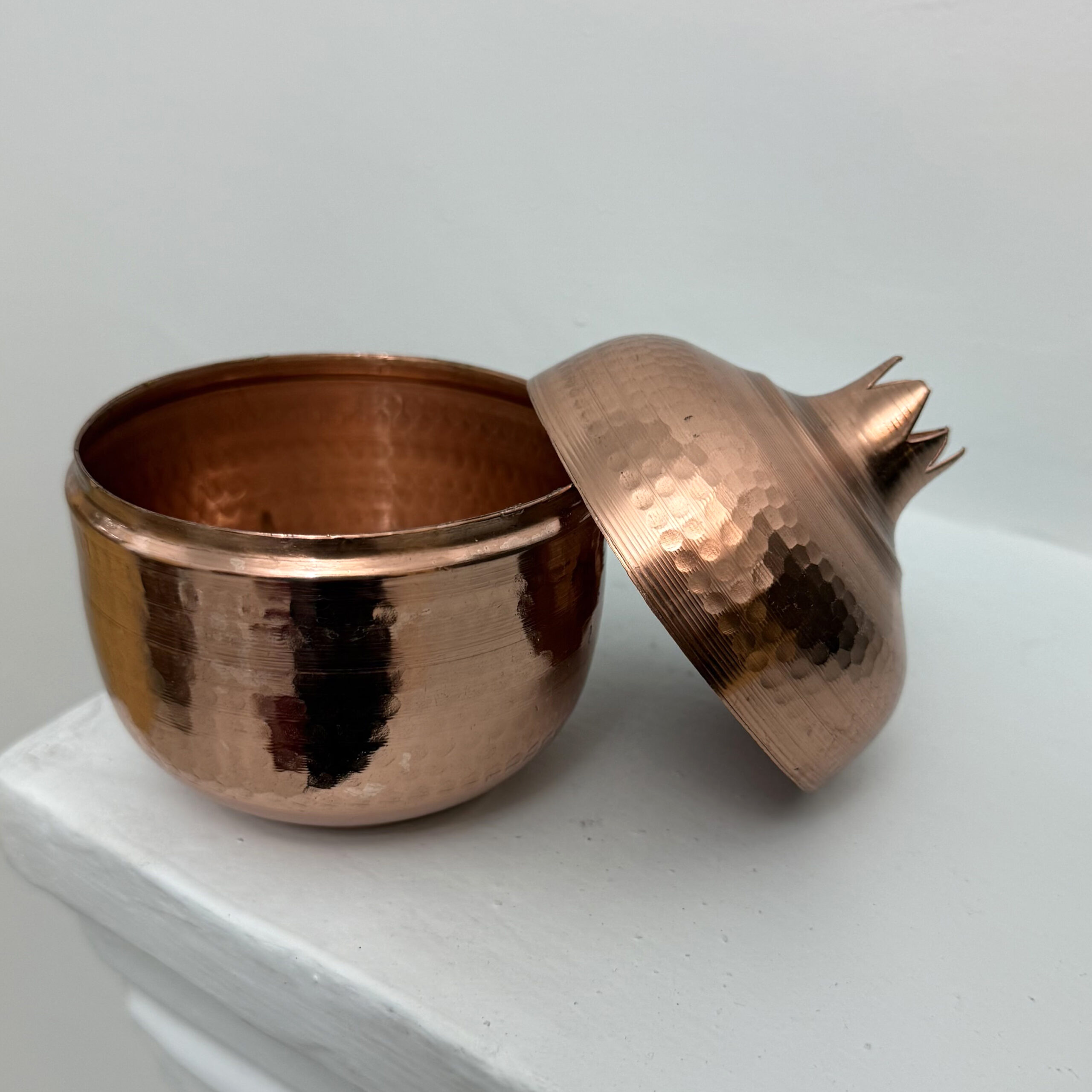 قندان انار مسی نانو شده به همراه رنگ ثابت در سه سایز مختلف موجود می باشد.