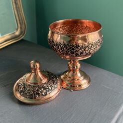 قندان مسی ترمه تک پایه با قلم ماشینی نانو شده بدون تغییر رنگ