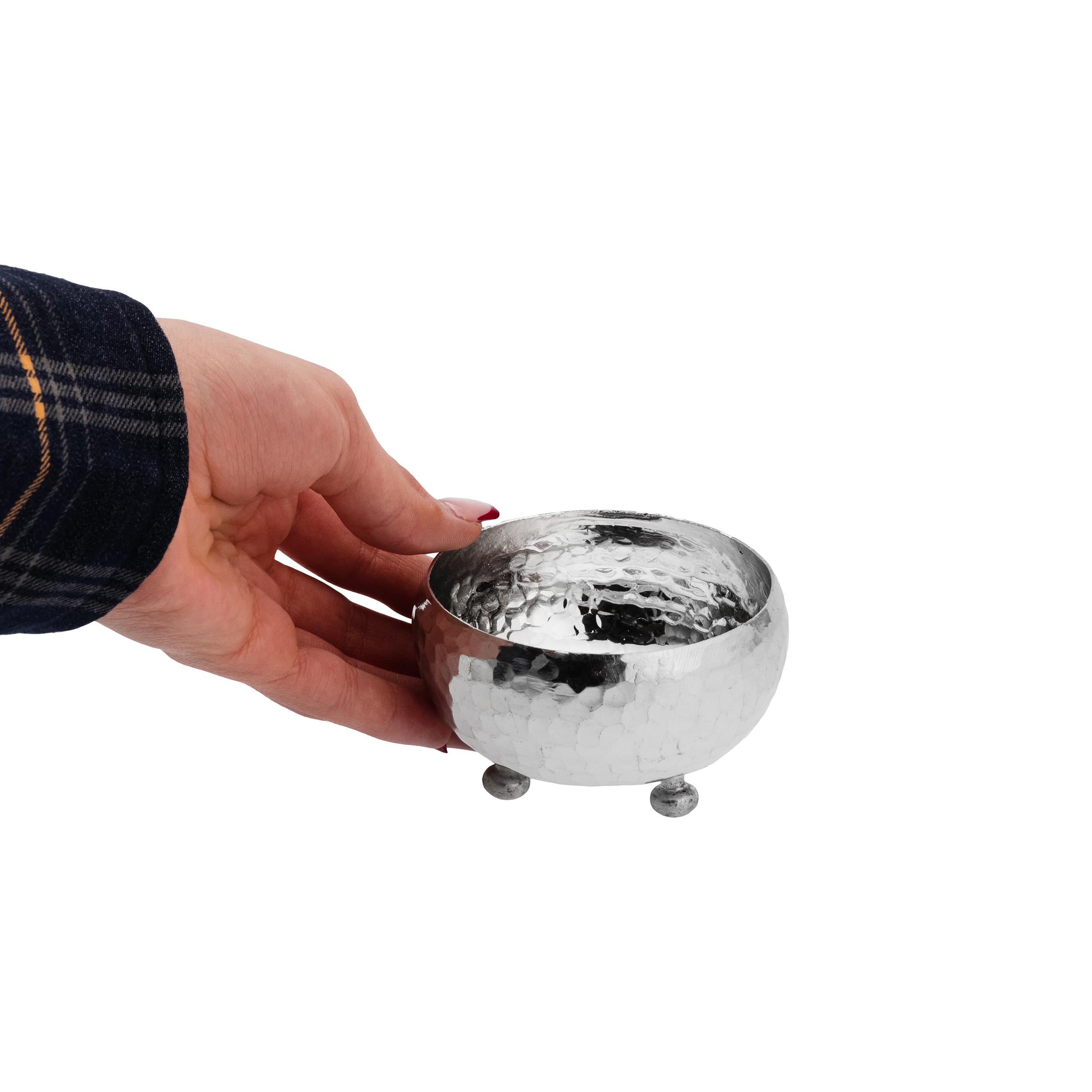 کاسه مسی مینیمال سه پایه دست ساز چکش کاری شده با رنگ ثابت.
