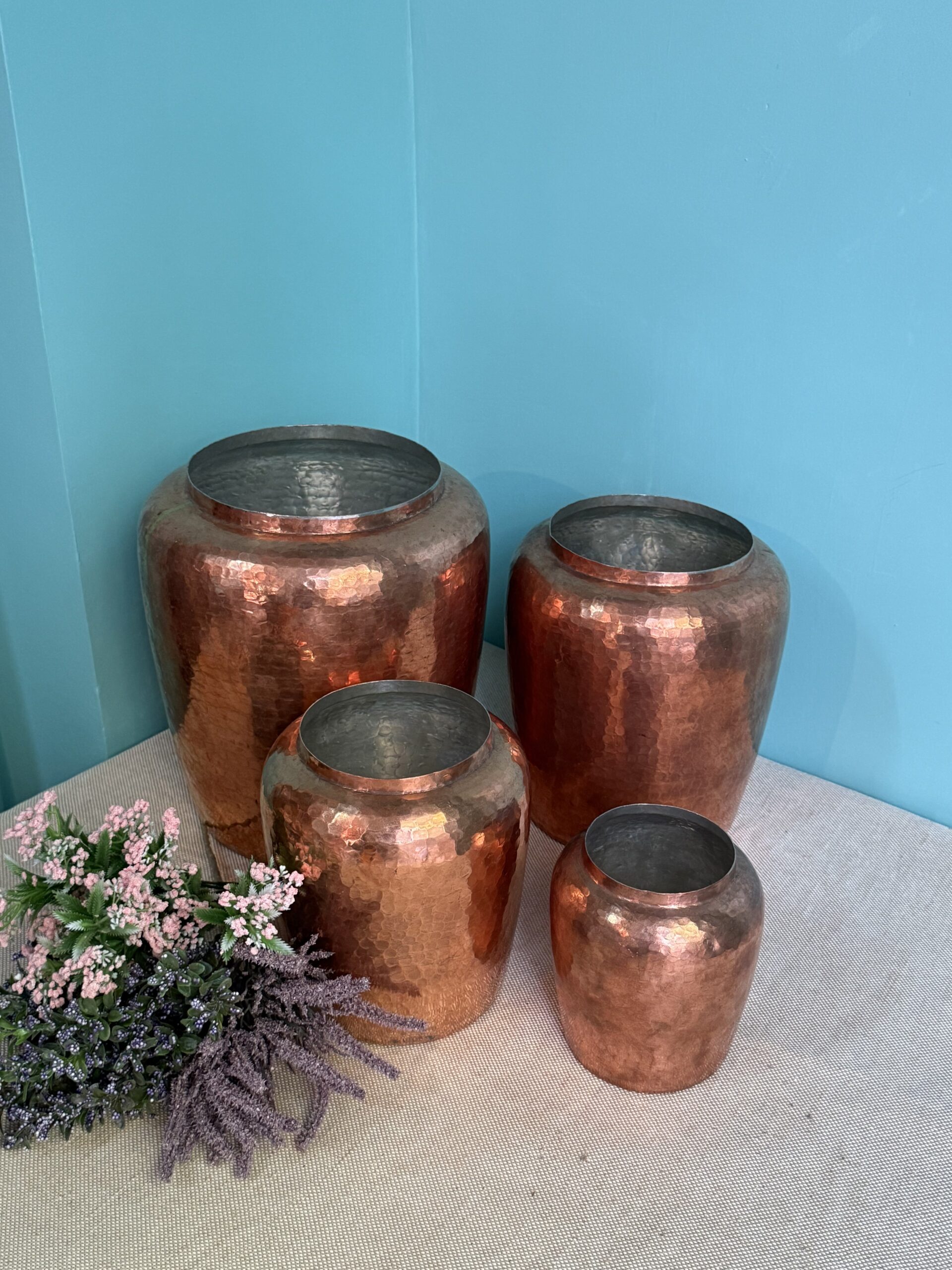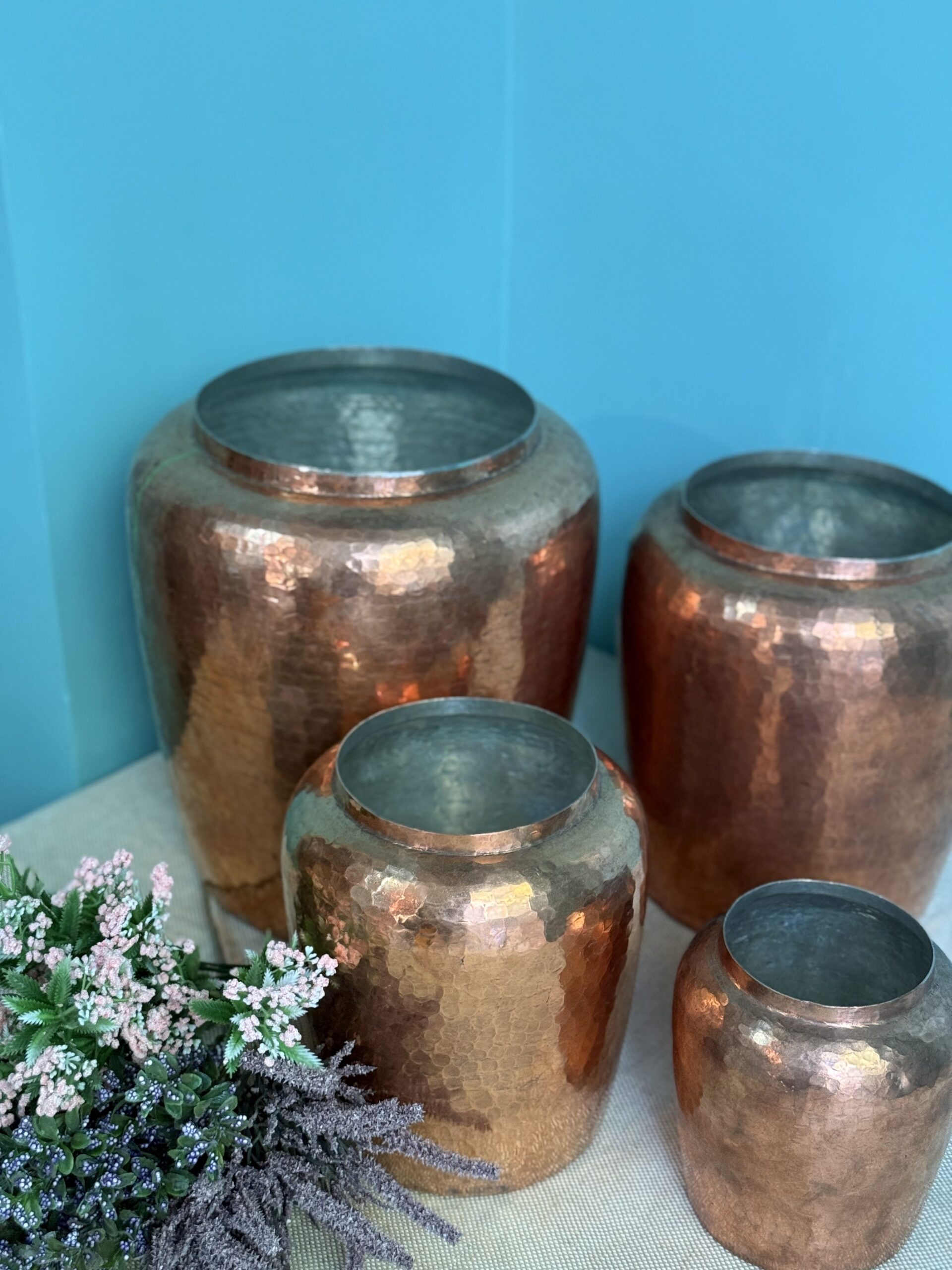 گلدان مسی خمرهای قرمز چکش کاری شده ساخت دست هنرمندان زنجانی در 4 سایز موجود می باشد.